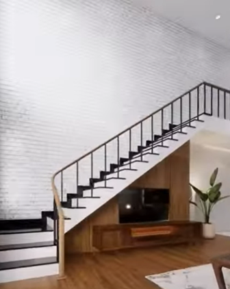 - Cầu thang nhà gác lửng thường ở phòng khách hoặc ngăn giữa phòng khách và nhà bếp.