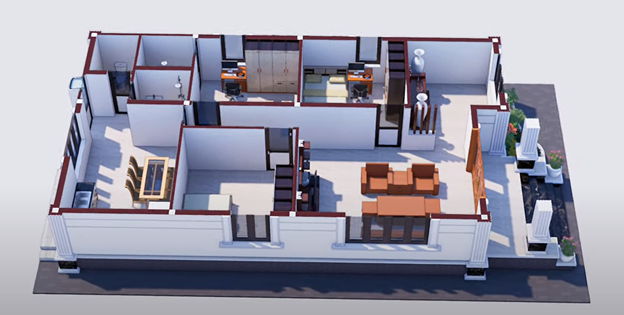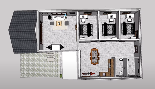 2. Cách bố trí phòng của nhà cấp 4 mái thái 3 phòng ngủ