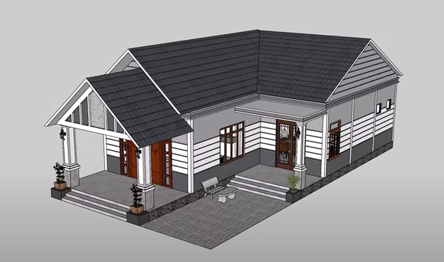 Ngoài kiểu thiết kế như ở trên thì nhà cấp 4 mái thái 3 phòng ngủ còn có kiểu thiết kế hình chữ L: