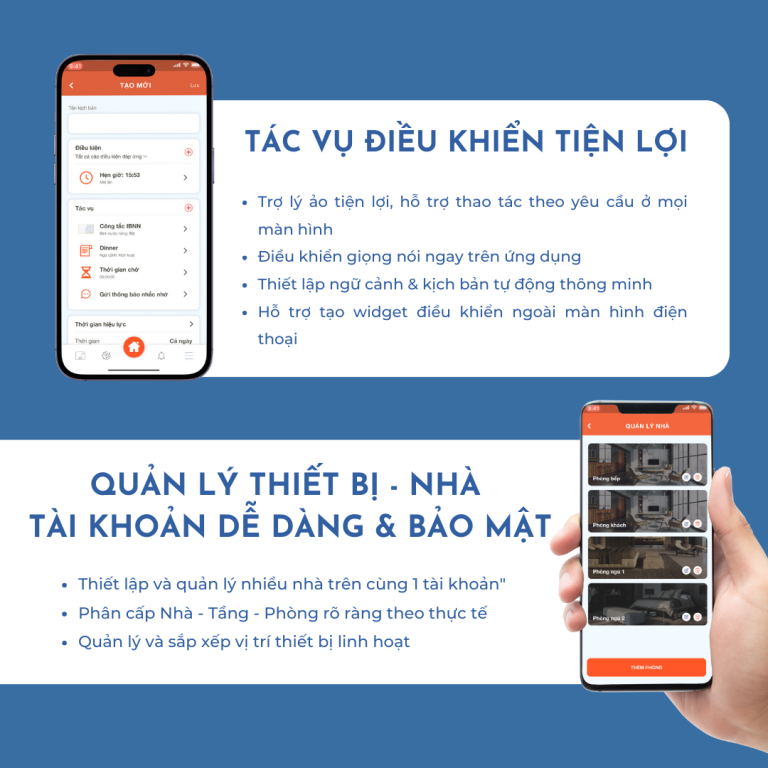 Quản lý thiết bị, nhà, tài khoản dễ dàng & bảo mật