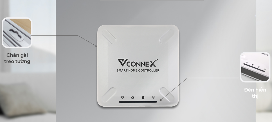 Bộ điều khiển trung tâm Vconnex (Smart Home Controller) được coi là đầu não của hệ thống nhà thông minh, có khả năng kết nối, xử lý thông tin từ các thiết bị nhà thông minh khác nhau trong một ngôi nhà. Từ đó, người dùng có thể điều khiển các thiết bị điện từ xa, điều khiển bằng giọng nói, hẹn giờ, thiết lập ngữ cảnh, kịch bản thông minh một cách tiện lợi.
