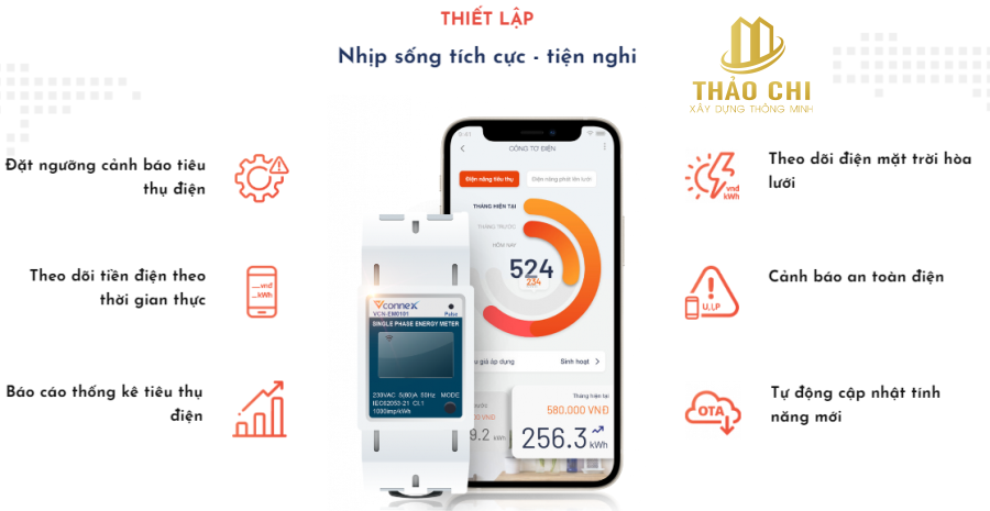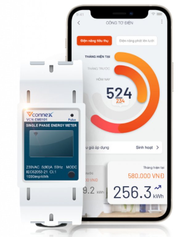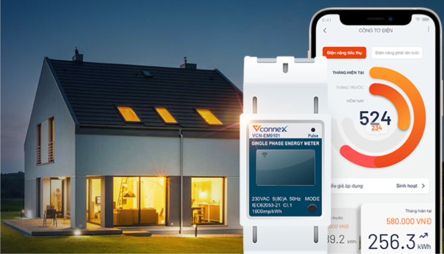 - Công Tơ Điện 1 Pha Thông Minh của VConnex kiểm soát điện thông minh, hiện đại
